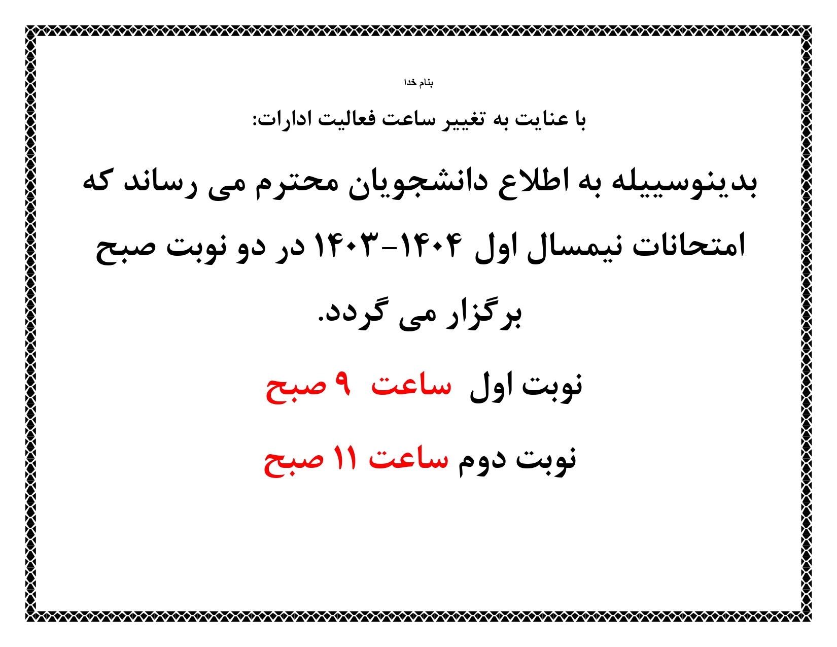 • گروه خبری : اطلاعیه های برنامه ریزی و امتحانات